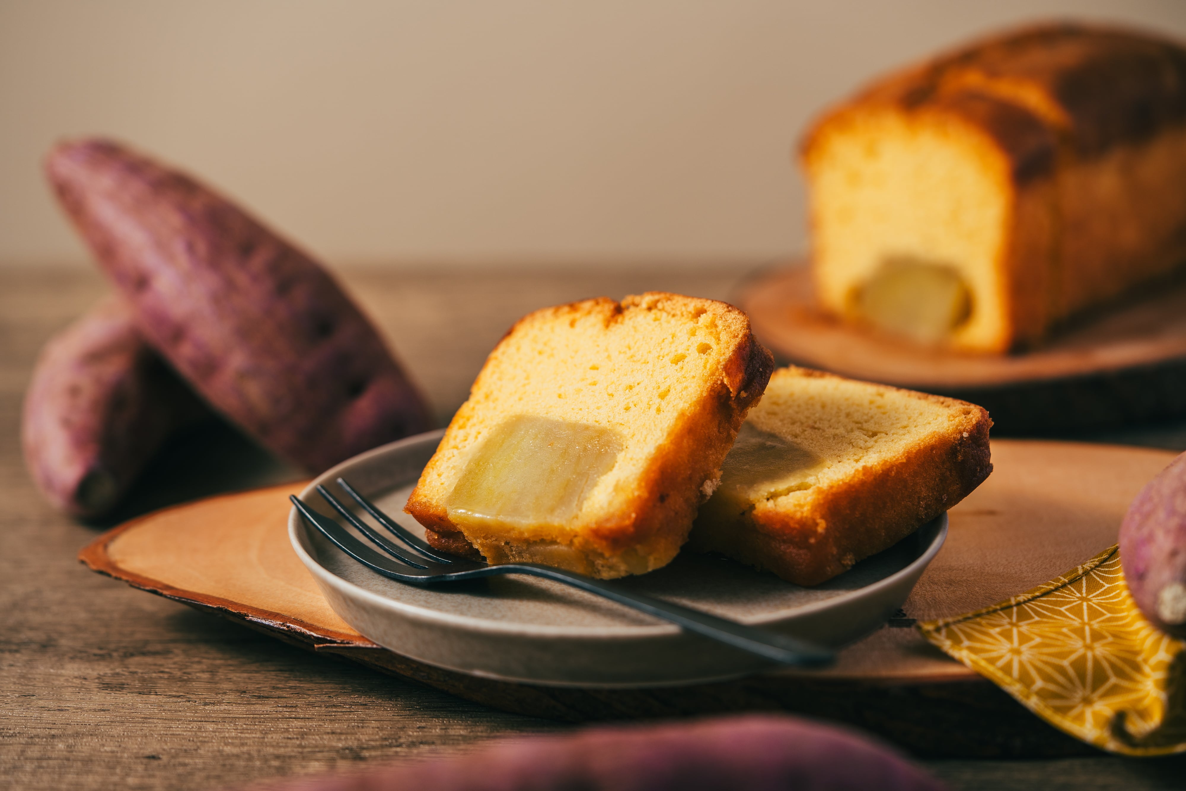 長期低温熟成したサツマイモの蜜煮が贅沢に入ったパウンドケーキ1本です。